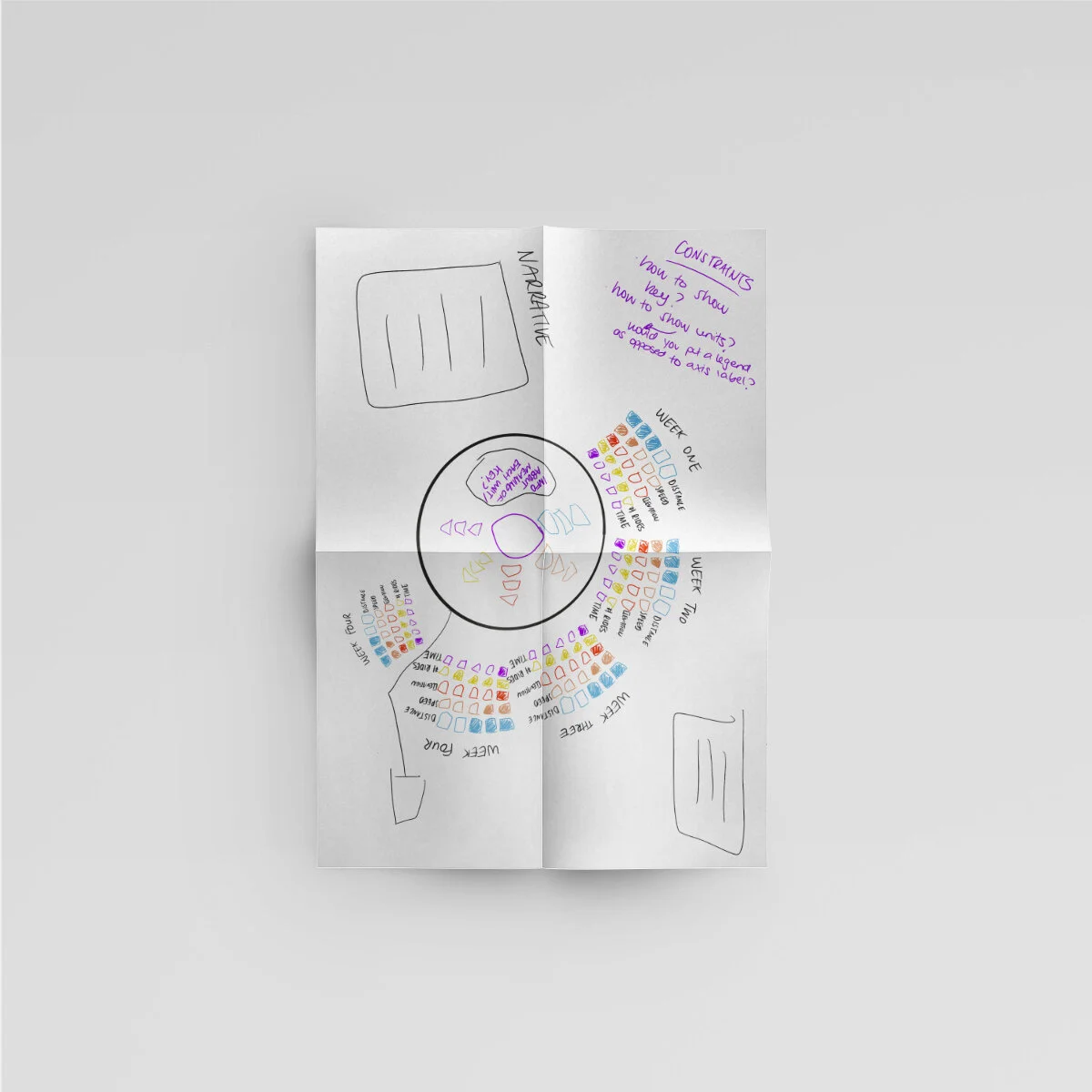 The hierarchy of text elements was also carefully considered to convey a narrative for the reader early on, subsequently providing context for datapoint interpretation. Coupled with this was the consideration of event label positioning, intentionally aligned with the radius of the chart to create a sense of movement for readers.